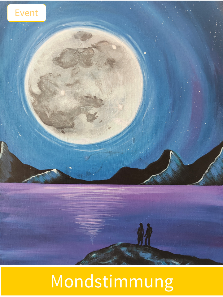 Zusammen mit Olivia malst du einen eindrückliches Mondbild auf eine Leinwand