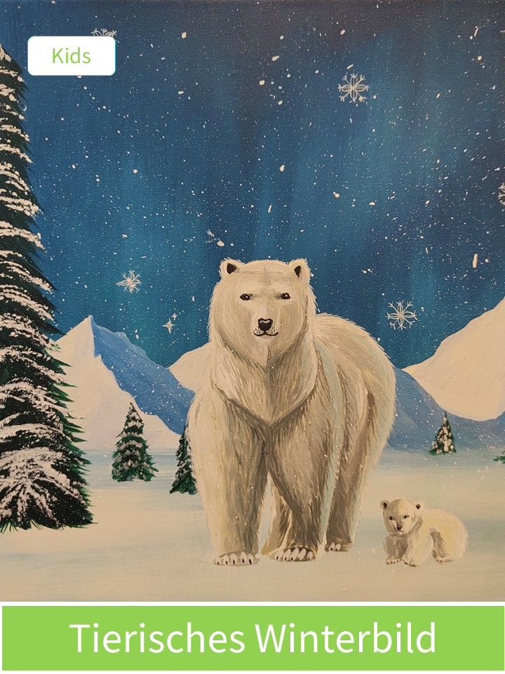 Zusammen mit Olivia malst du in Wildtier deiner Wahl in eine winterliche Landschaft. Es kann ein Eisbär, ein Pinguin, eine Robbe, etc. sein – du entscheidest.  Dieser Kurs findet an drei Nachmittagen statt: 03.12, 10.12 und 17.12. Du kannst alles oder nur bestimmte Kursteile besuchen. Das machen wir im ersten Teil: Heute schaust du mit […]