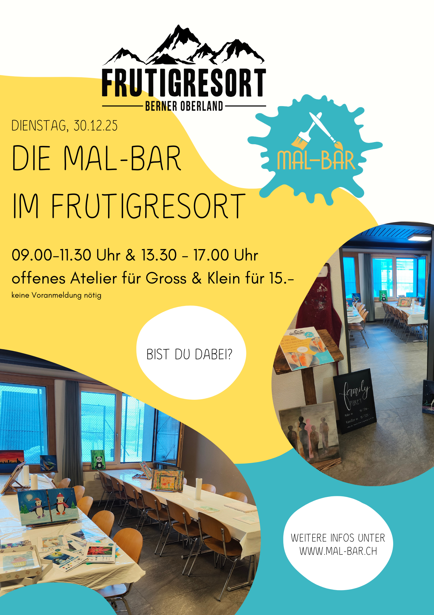 Letzte Malgelegenheit im Jahr 2025: Die offene MAL-BAR ist für euch von 9.00 - 11.30 Uhr und 13.30 - 17.00 Uhr bereit. Keine Voranmeldung nötig |